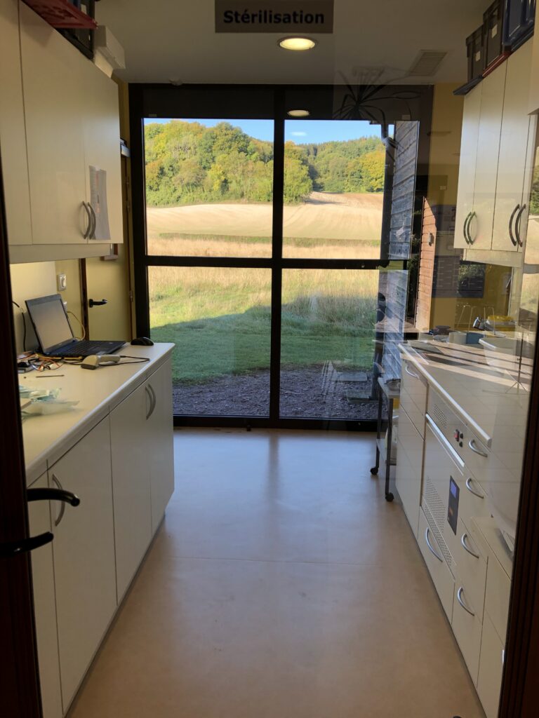 Il est constitué de deux salles de soins (une pour l’omni-pratique et l’autre pour la chirurgie), une salle radiologique pour le scanner, une salle de stérilisation, un local technique (compresseurs et aspirations), un bureau pour le praticien avec kitchnette, une salle d’attente et accueil, un vestiaire pour le personnel.