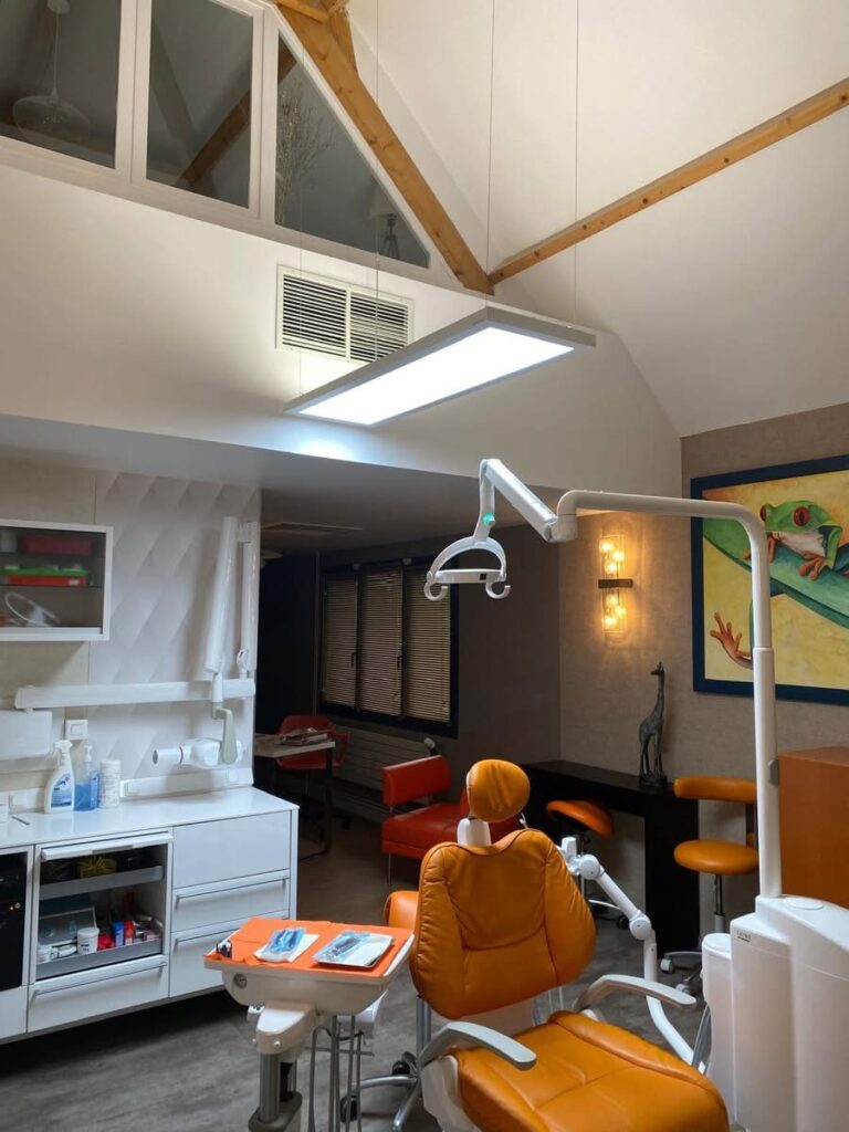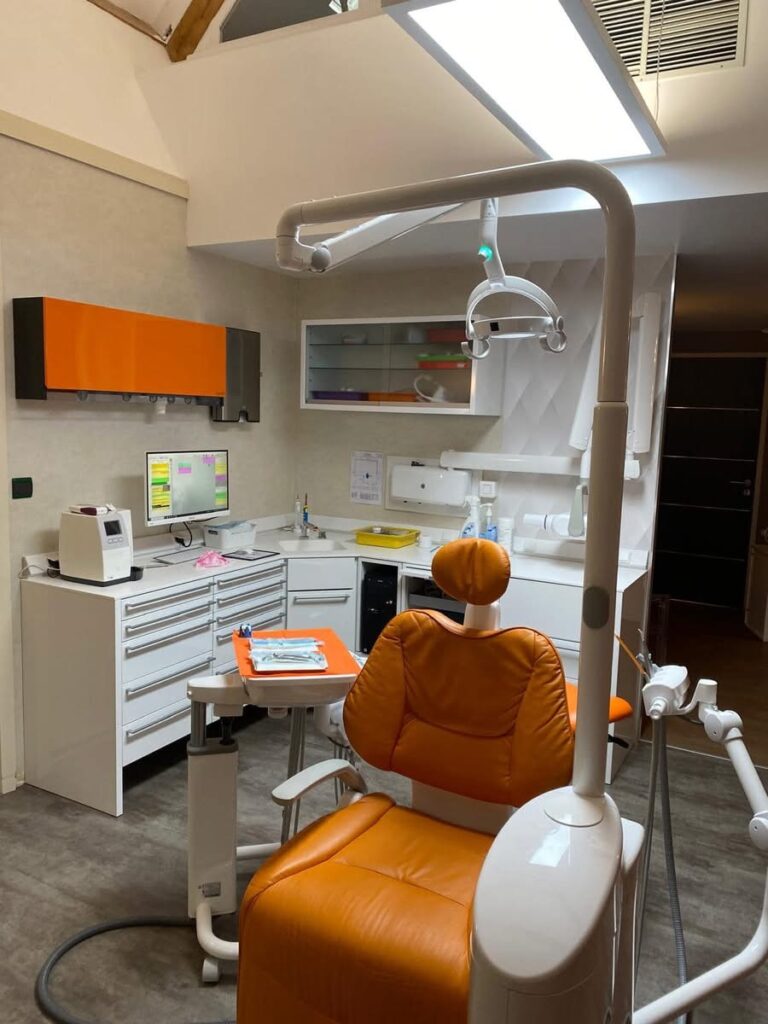 Il est constitué de deux salles de soin, une salle radio, une salle de stérilisation, une salle d’attente et accueil. Il est aux normes PMR. Il est bien situé (arrêt de bus en face du cabinet).