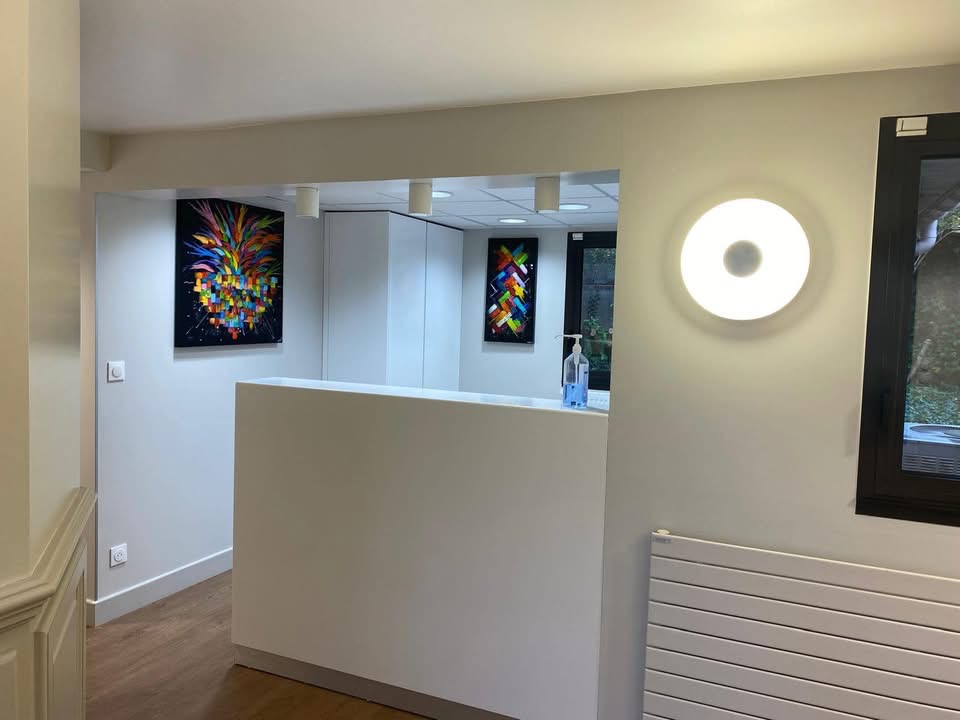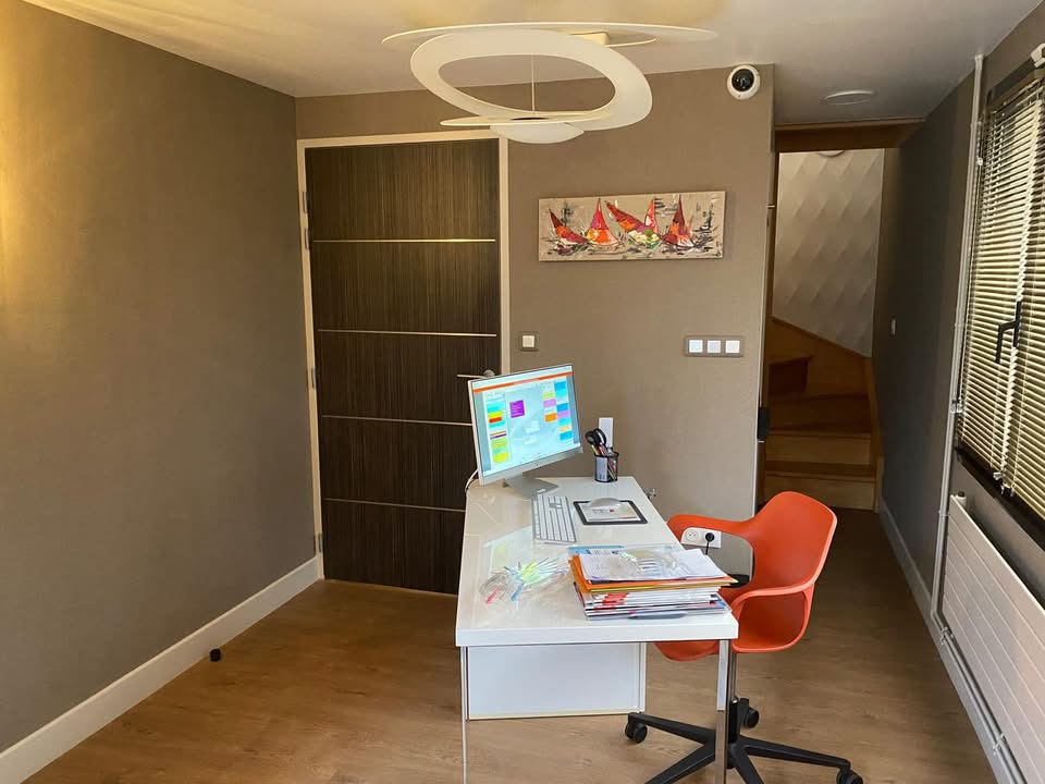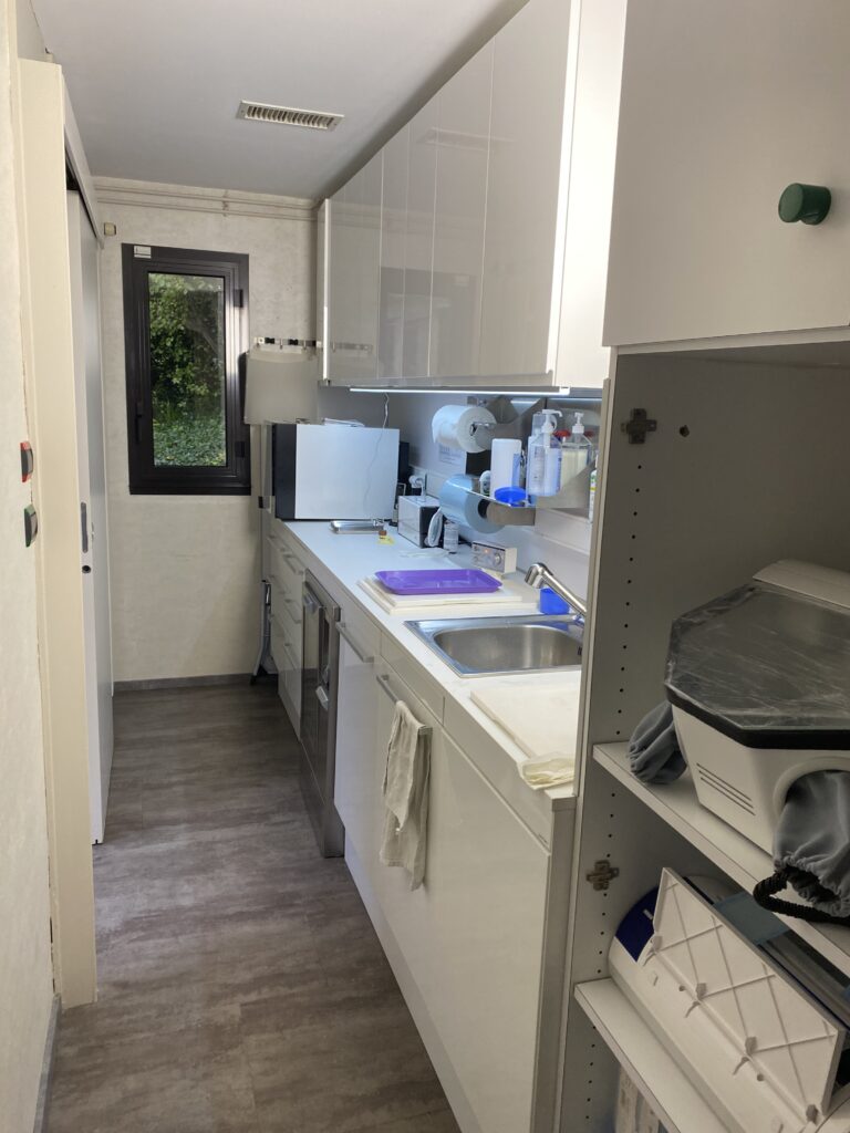 Le cabinet, de plein pied, qui date de 1992 avec une rénovation globale en 2021, fait 110m2 sur une surface extérieure de 500 m2. A l’étage du cabinet se trouve une salle de repose et des toilettes privées.